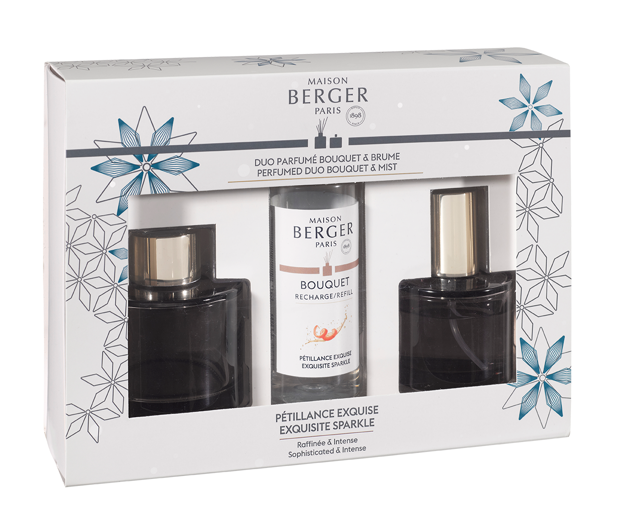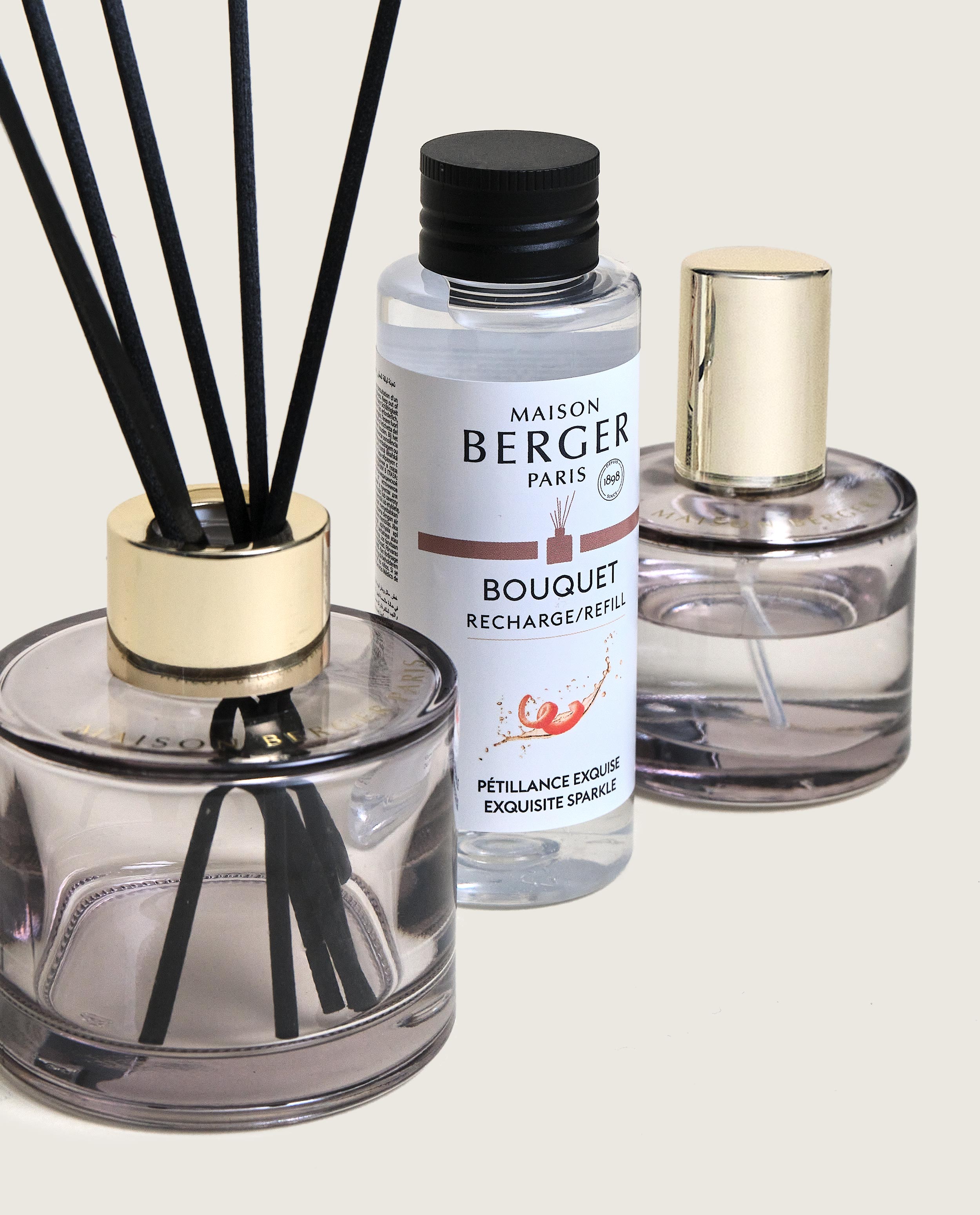 Подарочный набор "Розали" с ароматом-бестселлером "Брызги Шампанского" от бренда Maison Berger Paris состоит из аромадиффузора 90 мл с ивовыми палочками и интерьерных спрей-духов 50 мл.