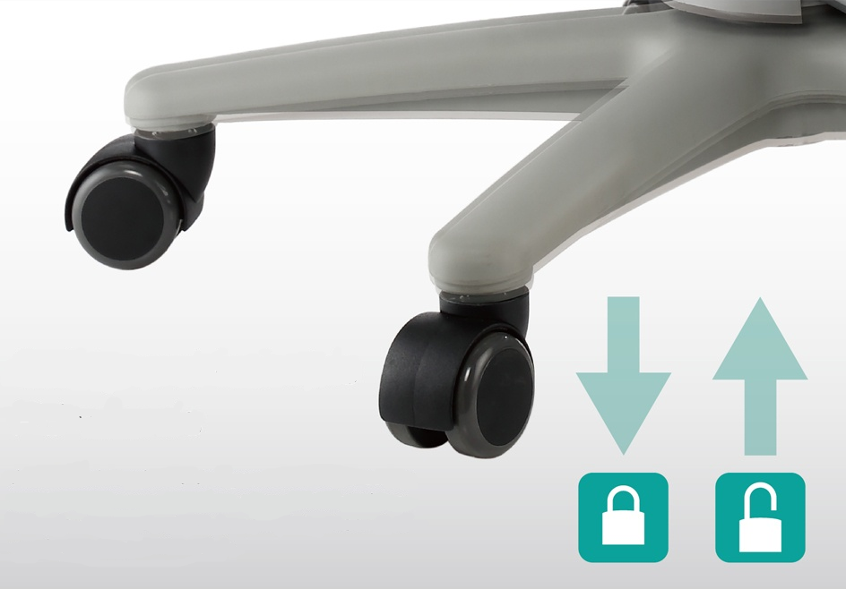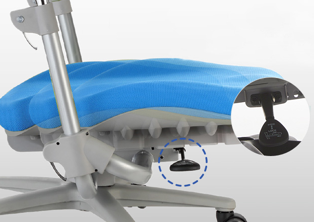 - Блокирует движение кресла во время сидения, благодаря чему кресло не откатывается от стола и ребенок не сутулится. Также колеса с полеуретановым покрытием бесшумные и безопасные для любого покрытия пола.
