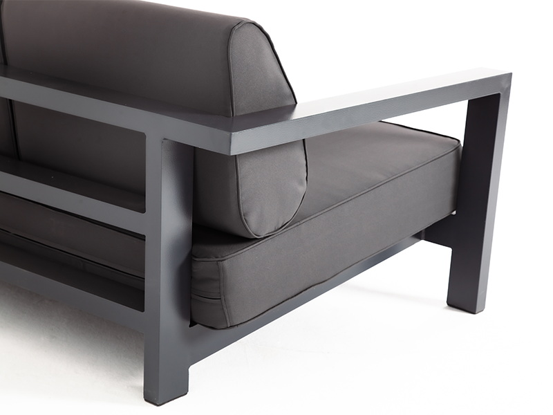 Стильный трехместный диван «Гранада» для обустройства зоны отдыха на балконе, в кафе или летней веранде. Каркас изготовлен из высокопрочного алюминия темно-серого цвета.